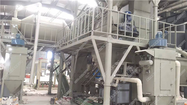 設(shè)備特點(diǎn):配料方式誤差小,采用電腦自動計量配料,可配置多種砂漿配方比例;混合機(jī)采用雙軸槳葉無重力混合機(jī),相對于螺帶混合機(jī)具有更快的混合速度以及均勻度。二次混合體系促進(jìn)砂漿均勻性,成品倉配置有電機(jī)減速機(jī)以及單軸螺帶。除塵設(shè)備配置凈化車間環(huán)境,降低粉塵影響。